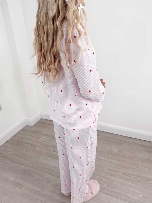 Sold outHeart Pink Striped Pyjama Set